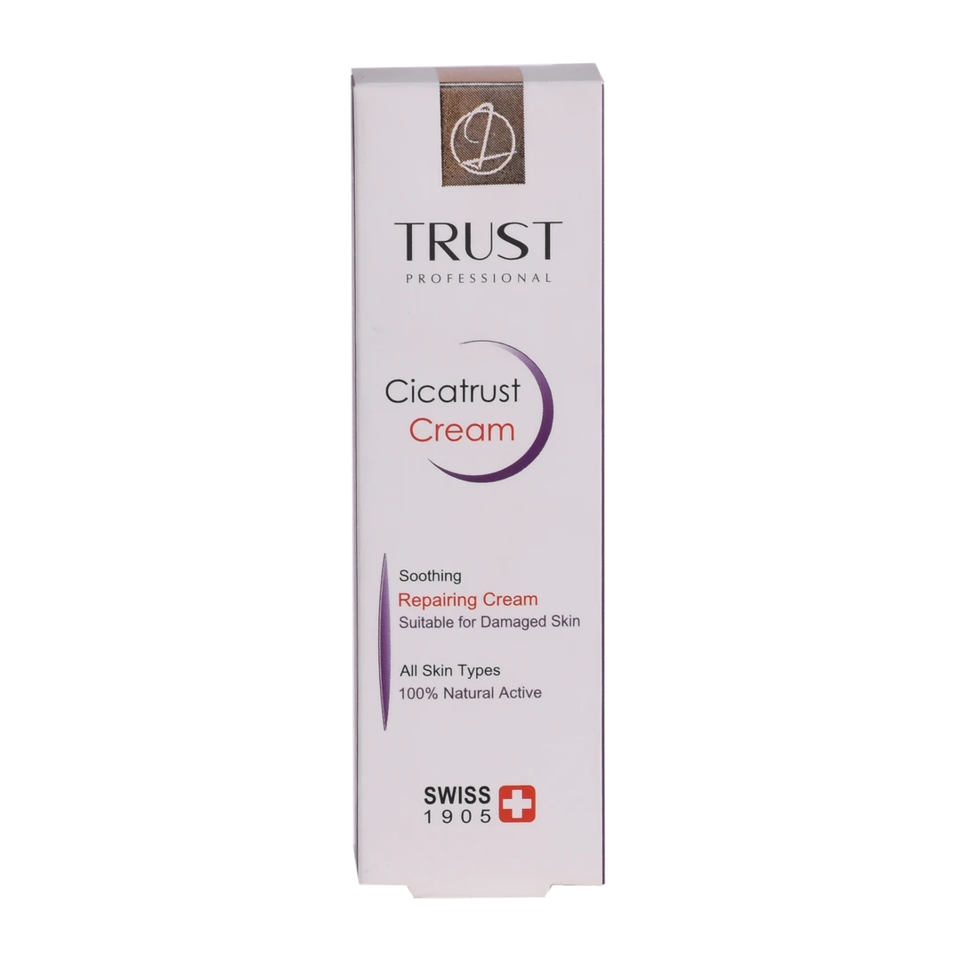 کرم ترمیم کننده تراست مناسب ترمیم پوستهای آسیبدیده و درمان انواع آسیبهای پوستی است. مواد مؤثره موجود در این کرم باعث تحریک به تکثیر سلولهای پوستی و ترمیم آسیبهای واردشده به پوست میشوند؛ این کار را نیز با افزایش انقباض عضلات اطراف ناحیه آسیبدیده، کمک به جمع شدن زخمها و بهبود سریعترشان انجام میدهند. وجود ترکیبات فعال گیاه براسیکای این محصول، از رشد باکتریها و قارچها جلوگیری کرده و از طریق اولیگوگالاکتومانان جلوی التهاب، قرمزی، خارش و سوزش پوست در ناحیه آسیبدیده را میگیرد. همچنین مصرف این کرم با داشتن ترکیبات فعال سرامیدی به آبرسانی پوست هم کمک میکند.