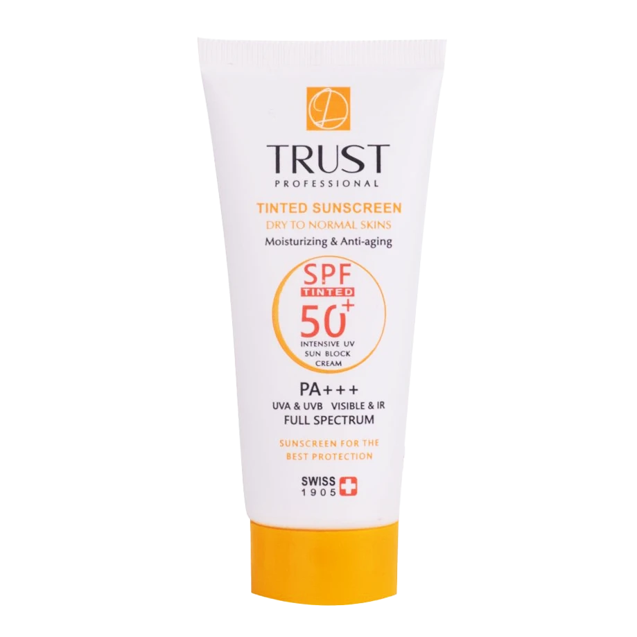 کرمهای ضدآفتاب رنگی تراست با SPF50+ از مرغوبترین و جدیدترین مواد اولیه موثره دارای حداکثر حفاظت دربرابر پرتوهای مضر خورشید ساخته شدهاند؛ این کرم با وجود بهرهمندی از بافتی سبک، دربرابر آسیبهای وارده توسط نور خورشید به خوبی از پوست محافظت و با مهار رادیکالهای آزاد از تخریب سلولهای پوستی جلوگیری میکند. همچنین با مصرف این محصول، بدون بسته شدن منافذ پوستی و ایجاد خلل در تنفس سلولهای پوستی، پوستتان آبرسانی میشود.