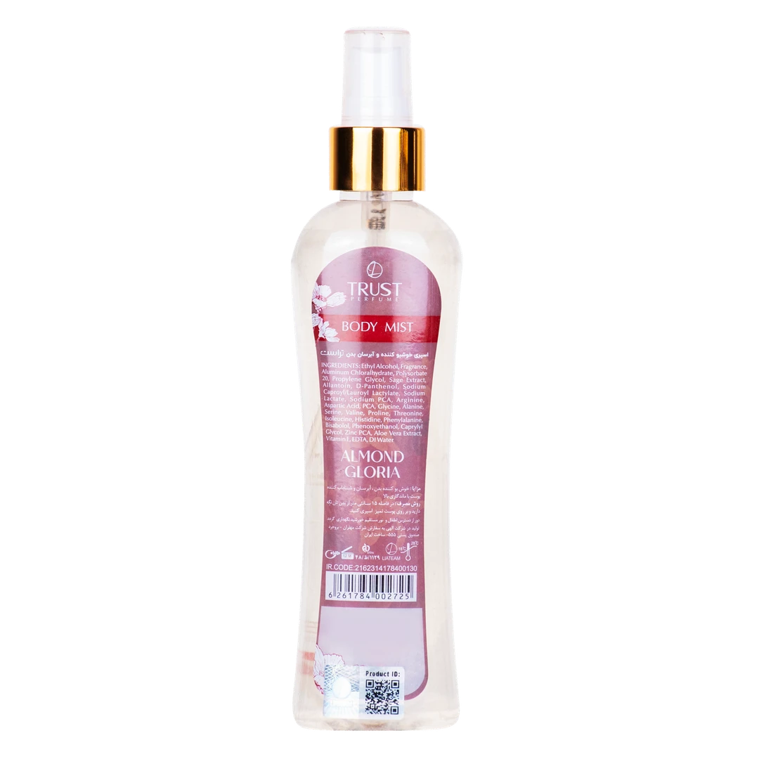 بادی میست زنانه تراست مدل Almond Gloria، در ابتدا با عطر بادام تازه، مشام شما را مینوازد. بعد از گذشت مدتی، عطر ارکیده طراوت و تازگی را به تن میبخشد و در نهایت، رایحه ملایم و خوش مشک روی پوست خودنمایی میکند.