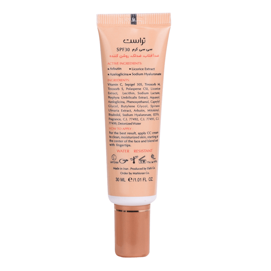 سی سی کرم پلاس تراست، به طور اختصاصی به روشن شدن پوست و برطرف کردن جای جوش و لکهای پوستی کمک میکند. این محصول بهطور همزمان با آبرسانی پوست، از ایجاد لکهای جدید در پوست جلوگیری مینماید. ترکیبات آربوتین، میتوکینیل، ویتامین سی، نیاسینامید و آزلوگلیسین به صورت همافزا، از تولید رنگدانههای ملانین جلوگیری کرده و به روشن شدن و رفع لکهای پوستی کمک میکنند. عصاره جلبک در این محصول باعث جلوگیری از ایجاد لکهای پوستی شده و همچنین وجود ترکیبات ضدالتهاب مثل عصاره گیاه اسپیرا اولماریا و بیزابولول در این محصول، التهابات ناشی از آکنه و سایر ضایعات پوستی را تسکین میدهد.