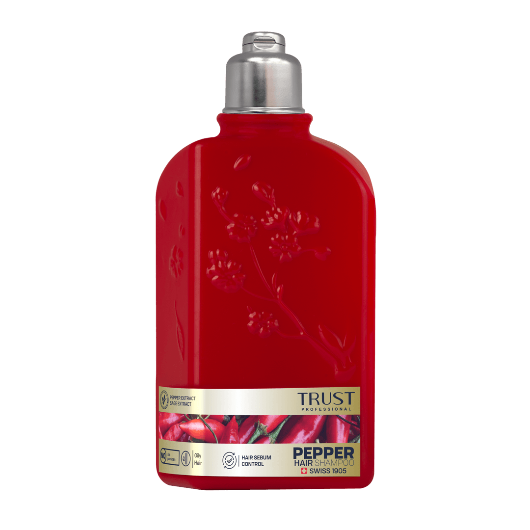 عصاره فلفل موجود در شامپو سر فلفل تراست، با تحریک فولیکولهای مو، به رشد بهتر مو و افزایش سلامت آن کمک میکند. علاوهبراین با افزایش گردش خون در پوست سر، از ریزش تارهای مو پیشگیری میکند. همچنین این محصول با داشتن عصاره مریمگلی در ترکیبات خود، ضمن کنترل چربی پوست، باعث براق شدن مو و رنگپذیری موهای خاکستری و بیرنگ میشود.