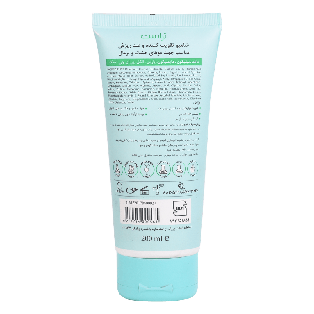 رفع ریزش مو - تقویت کننده فولیکول مو - تقویت و افزایش ضخامت تار مو - تنظیم pH کف سر - آبرسانی به تار مو - رفع خارش و التهاب پوست سر - بهبود خون رسانی به پوست سر