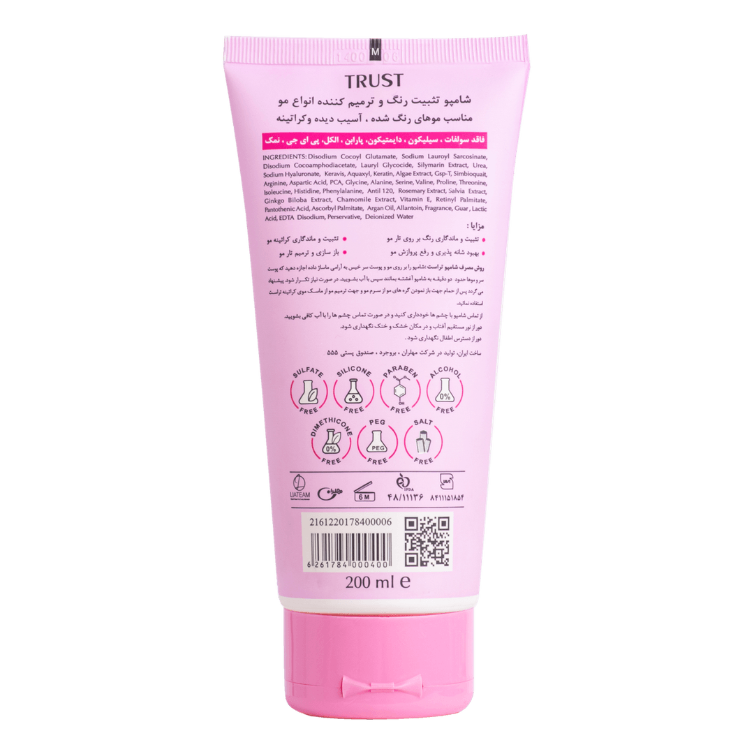 برای رسیدن به نتایج بهتر توصیه میشود همراه با این شامپو از ماسکهای تخصصی تراست نیز استفاده نمایید.