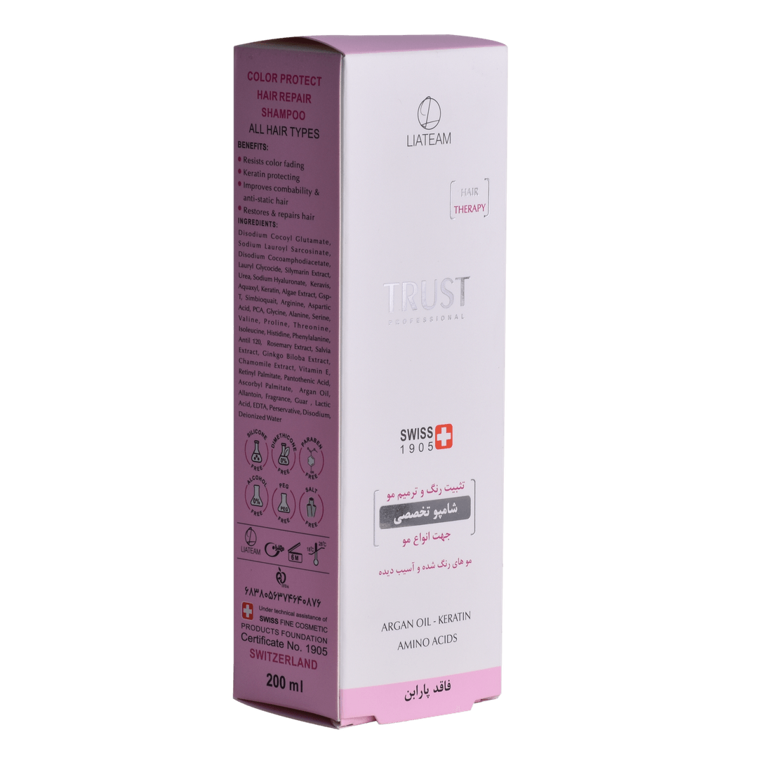 شامپوهای سری پروفشنال تراست، همگی از نظر فرمولاسیون و اثربخشی مطابق با آخرین استانداردهای اتحادیه اروپا هستند و تحت لیسانس دانشگاه لوزان سوییس تولید شدهاند.