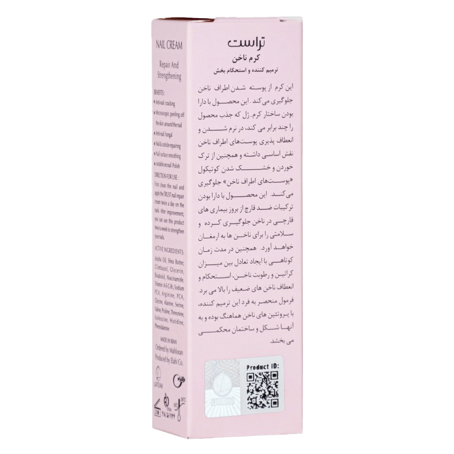 همانطور که پوست و مو به مراقبت احتیاج دارند ناخنهای دست و پا نیز از این قاعده مستثنی نیستند. کرم ترمیم کننده ناخن تراست از ریشه ریشه شدن ناخن جلوگیری میکند. کوتیکول به قسمت سفید رنگ در ابتدای رویش ناخن که تغذیه و رشد ناخن در این قسمت انجام میشود. این محصول بهصورت کرم است که در نرم شدن و انعطاف پذیری پوستهای اطراف ناخن نقش دارد؛ همچنین از ترک خوردن و خشک شدن کوتیکول «پوستهای اطراف ناخن» جلوگیری میکند. این محصول با دارا بودن ترکیبات ضد قارچ از بروز بیماریهای قارچی در ناخن جلوگیری کرده و سلامتی را برای ناخنها به ارمغان خواهد آورد. همچنین در مدت زمان کوتاهی با ایجاد تعادل بین میزان کراتین و رطوبت ناخن، استحکام و انعطاف ناخن های ضعیف را بالا میبرد. فرمول منحصر به فرد این کرم ترمیم کننده، با پروتئینهای ناخن هماهنگ بوده و به آنها شکل و ساختمان محکمی میبخشد.