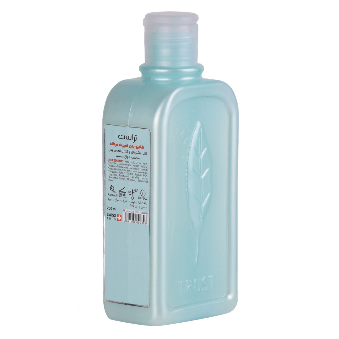 شامپو بدن اسپرت مردانه تراست، حاوی منتول و زینک PCA در ساختار خود بوده و با کنترل میزان تعریق بدن، از تکثیر باکتریها روی پوست جلوگیری کرده و حس خنکی و طراوت به آن میبخشد. این محصول گزینه مناسبی برای استحمام بعد از ورزش است.