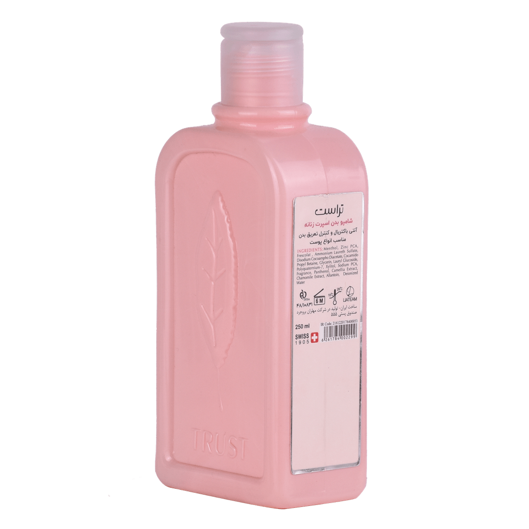 شامپو بدن اسپرت زنانه تراست، با داشتن منتول و زینک PCA در ترکیباتش، میزان تعرق را کنترل کرده و از تکثیر باکتریها روی پوست جلوگیری میکند. همچنین این محصول باعث حس خنکی و طراوت روی پوست شده و رایحهی مطبوعی روی آن ایجاد میکند. این محصول گزینه مناسبی برای استحمام بعد از ورزش است.