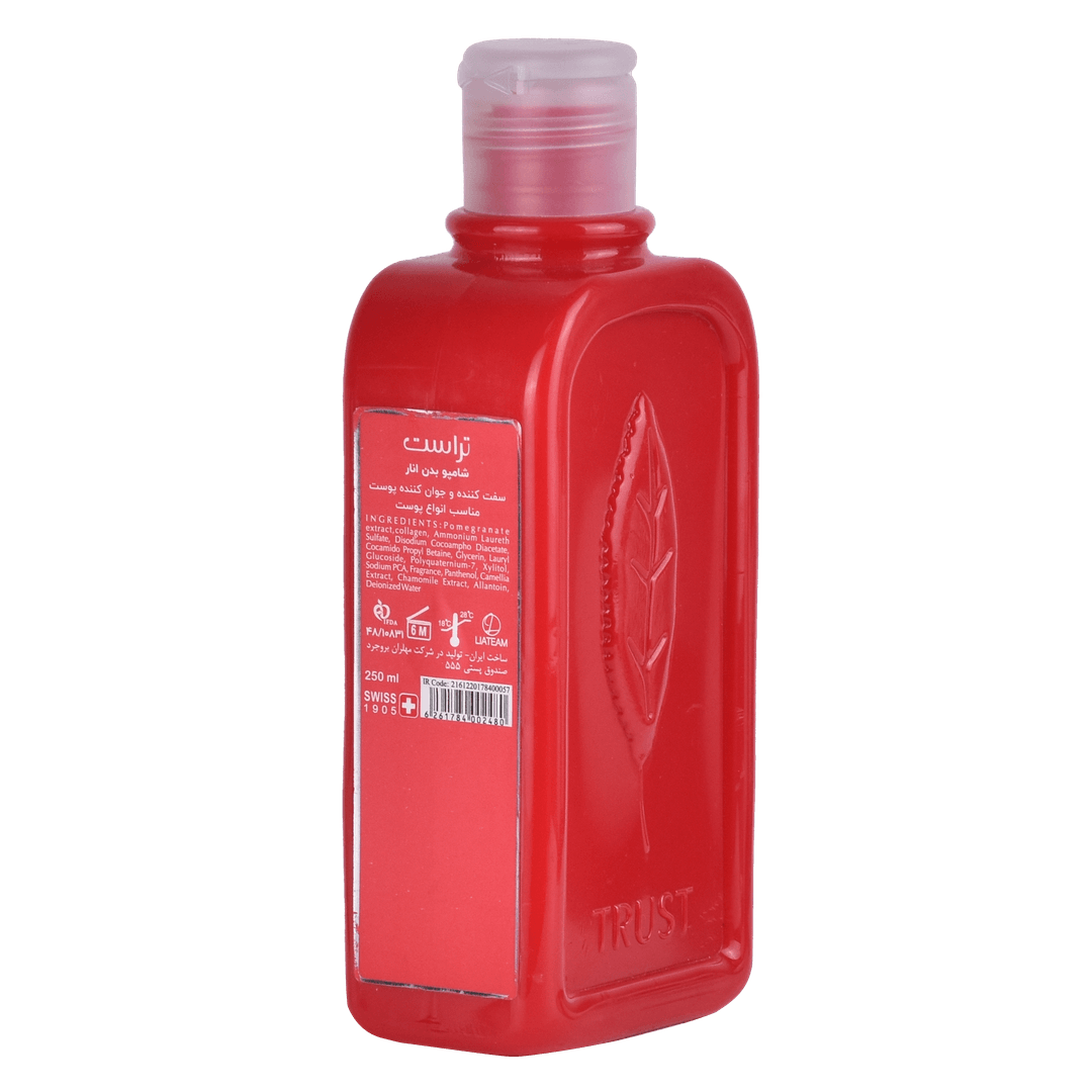عصاره انار، کلاژن، آمونیوم لورت سولفات، دی سدیم کوکوآمفودی استات، کوکامیدوپروپیل بتائین، پانتنول، لوریل گلوکوزید، رایحه، گلیسیرین، پلی کواترنیوم-7، زایلیتول، سدیم پی سی ای، عصاره کاملیا، عصاره بابونه، آلانتوئین، آب دیونیزه